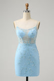 Navy A Line Spaghetti stropper Tyll Lace-Up Back Homecoming Dress