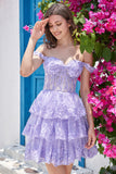 Prinsesse A Line Hvit korsett Tiered Kort Homecoming kjole med blonder