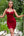 murstein rød skjede spaghetti stropper sateng brudepike kjole med spalt