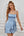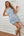 enkel lyseblå tett hjemkomst kjole med ruffles