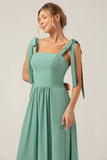 En linje Eucalyptus Chiffon Long brudepike kjole med plissert