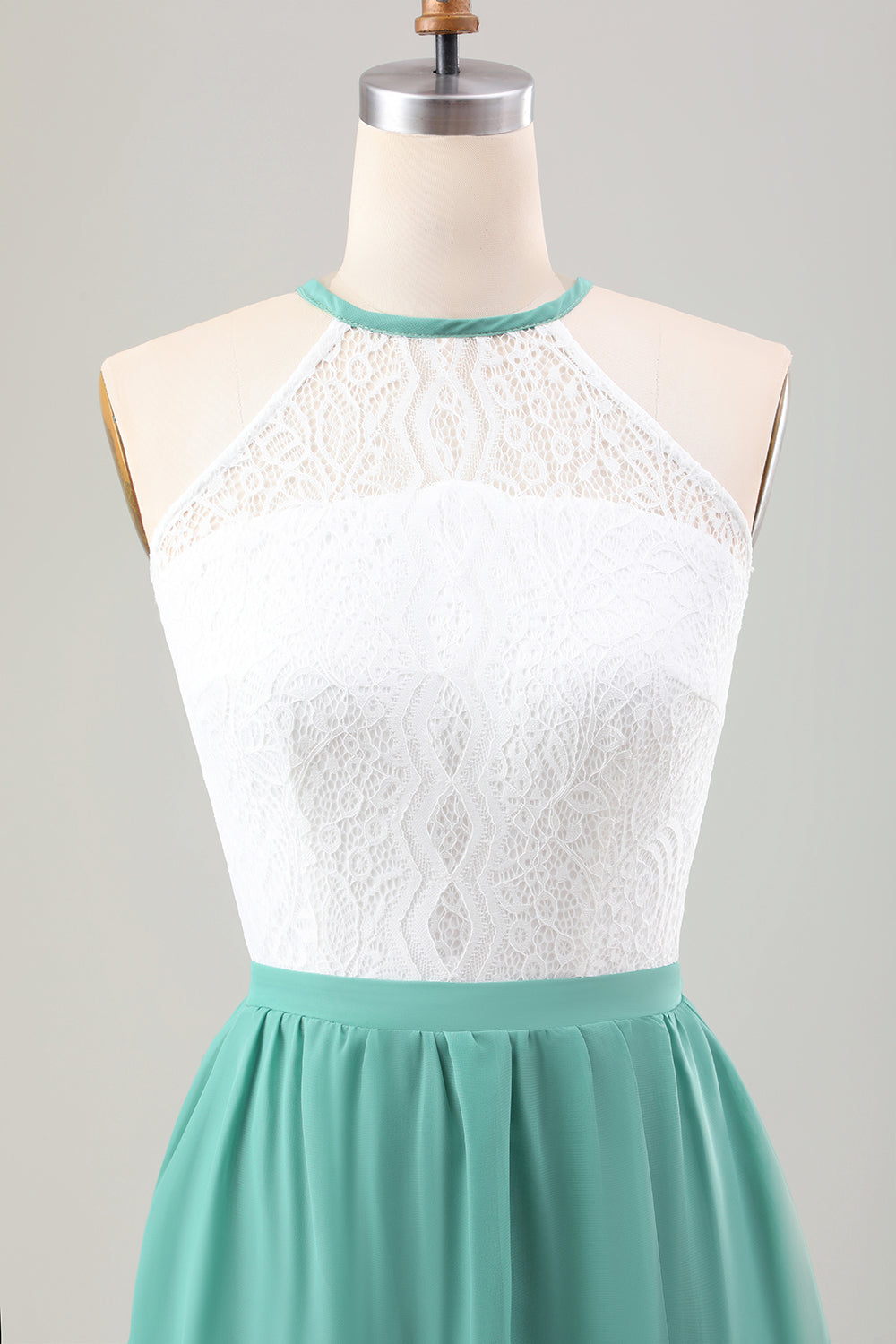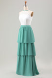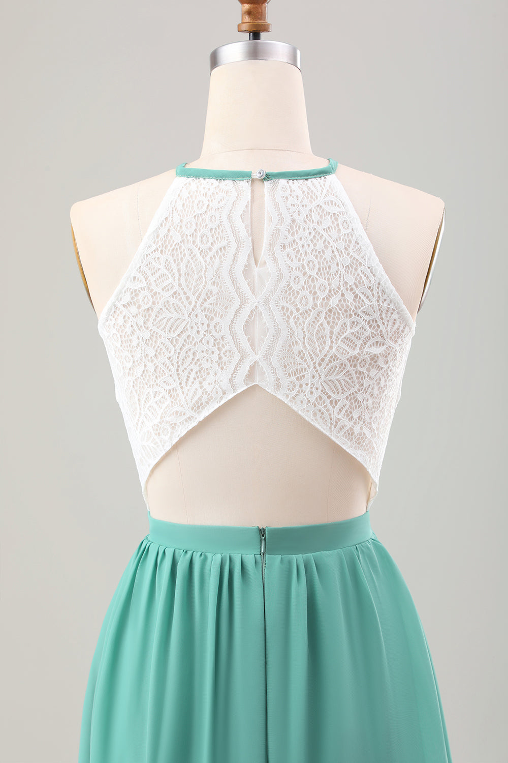Eukalyptus En linjelagdelt rufsete lang brudepikekjole med blonder