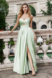 Grønn En linje av skulderen Korsett Maxi brudepike kjole med volanger