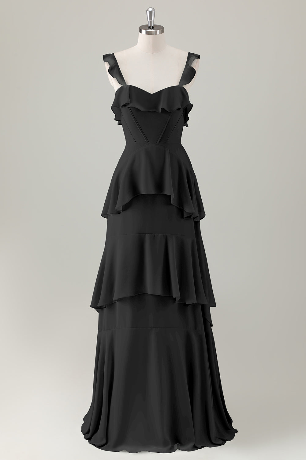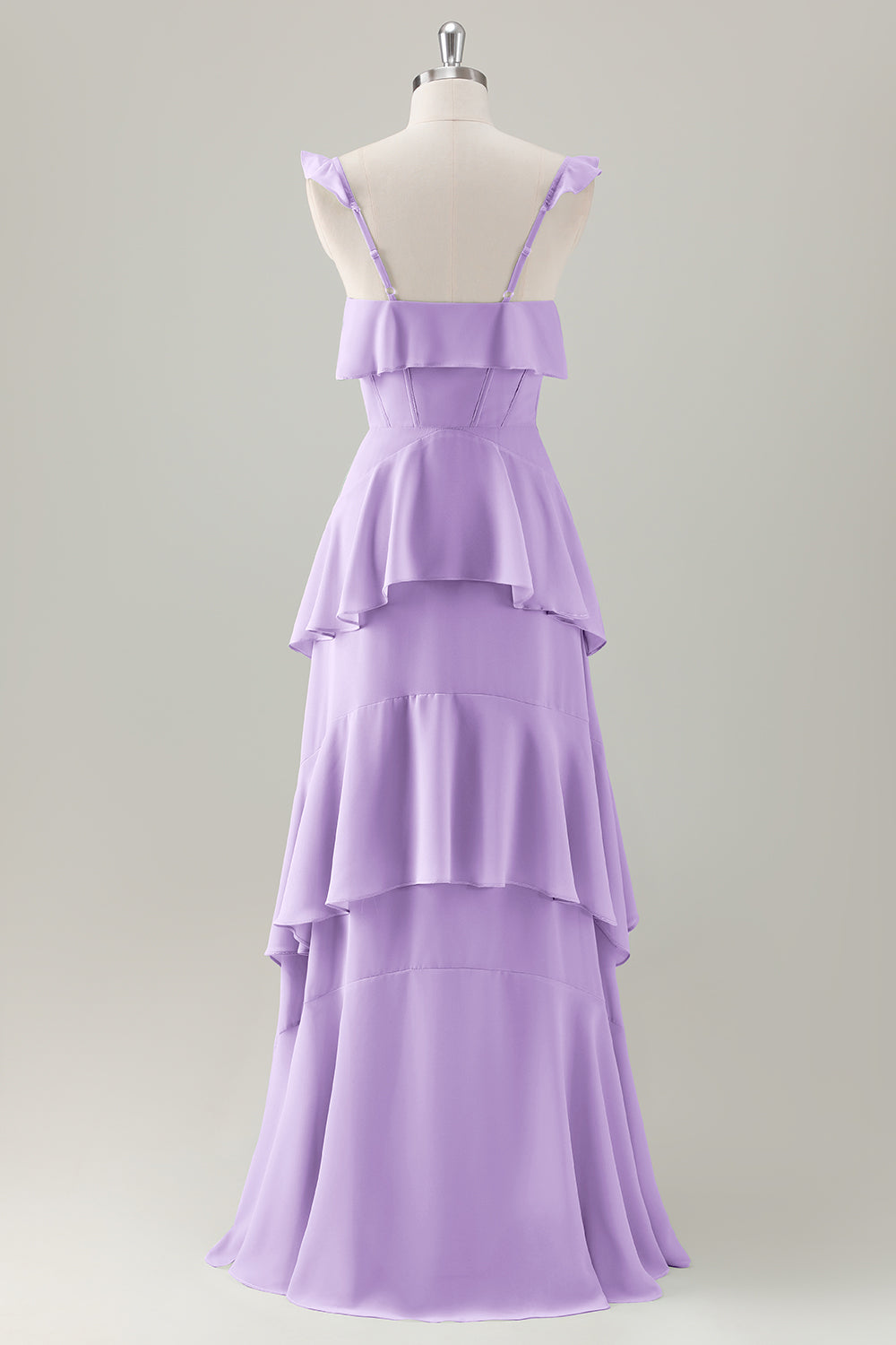 Lysegrønn A-linje Ruffle Lagdelt Chiffon Korsett Lang Brudepikekjole
