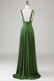 Oliven Deep V-hals ermeløs lang brudepike kjole