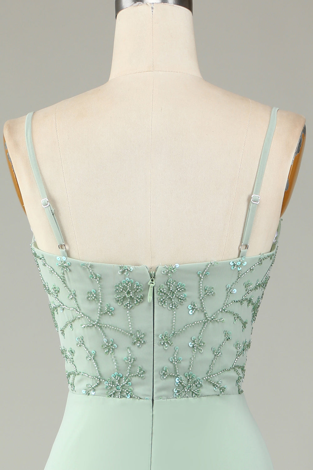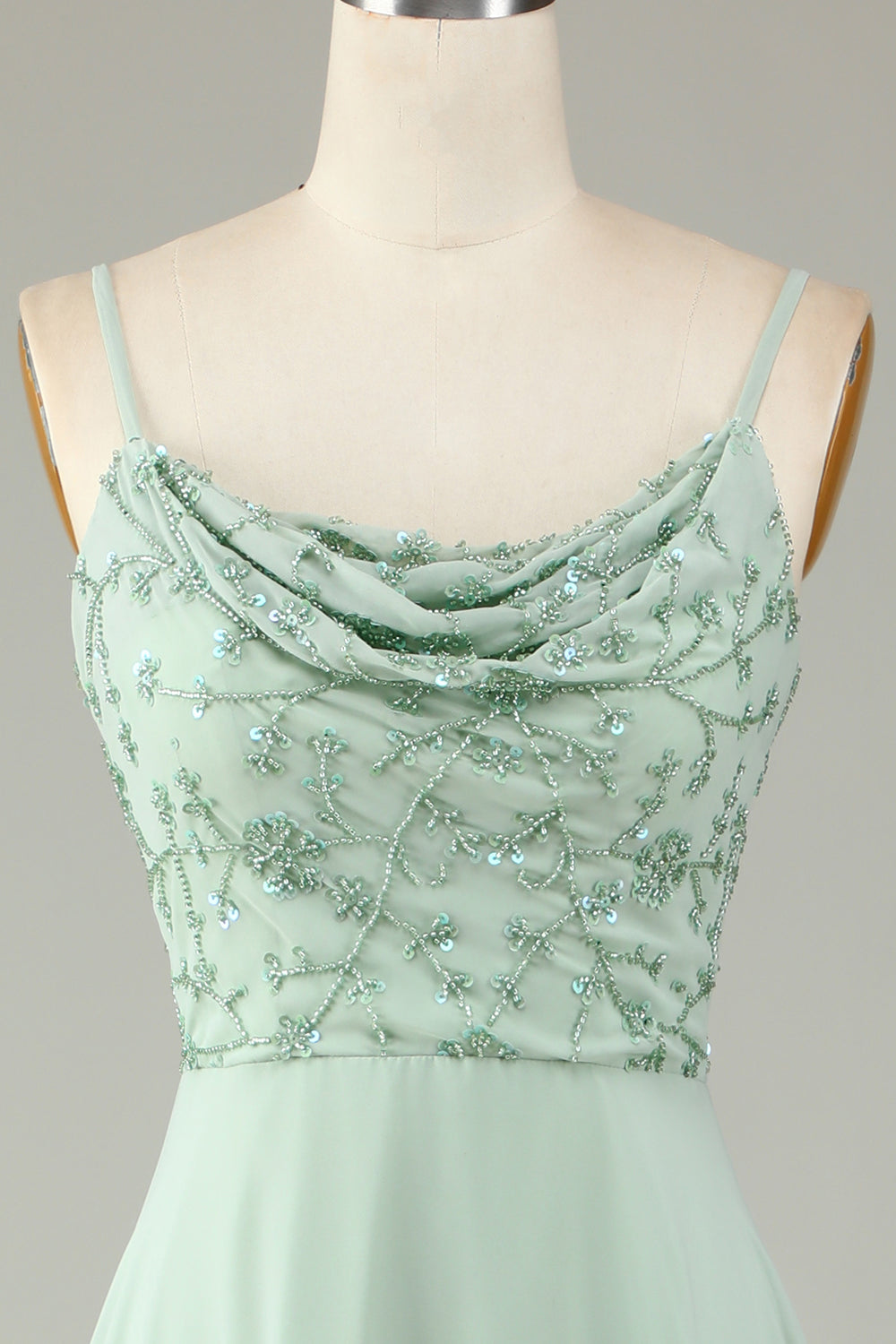 Spaghetti stropper Beaded Støvete salvie brudepike kjole