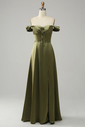 Salvie grønn Off the Shoulder En linje lang brudepikekjole med puffermer