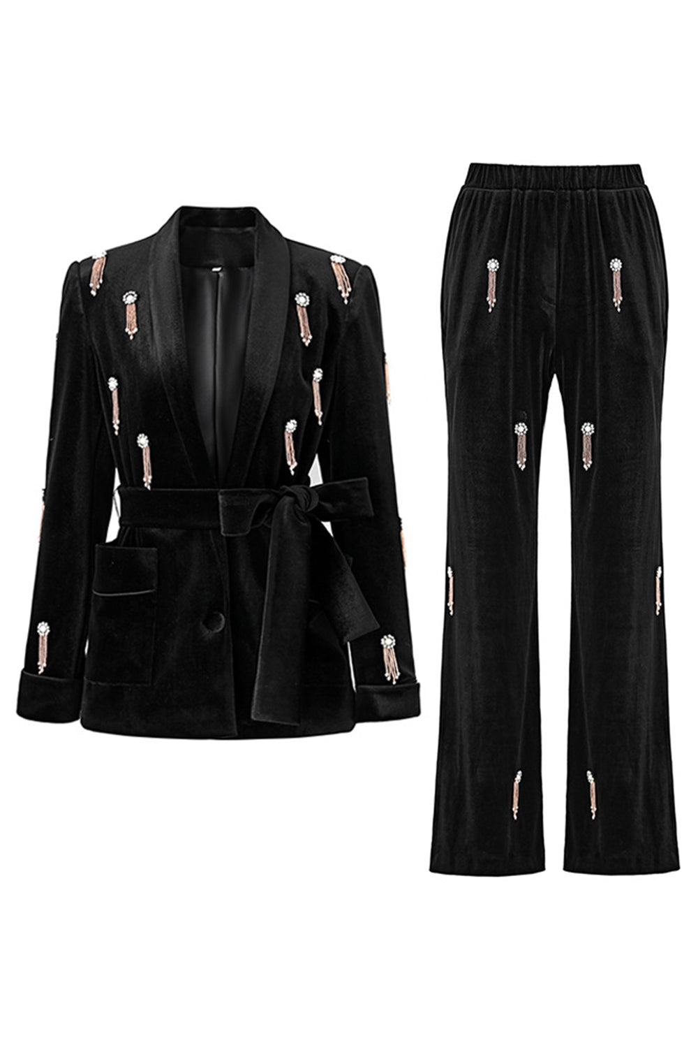Svart 2-delt sjal jakkeslag kvinner festdresser