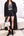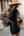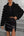 Svart fluffy rund hals fuskepels lange ermer frakk