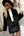 Svart hakket jakkeslag lange ermer fuskepels kort frakk