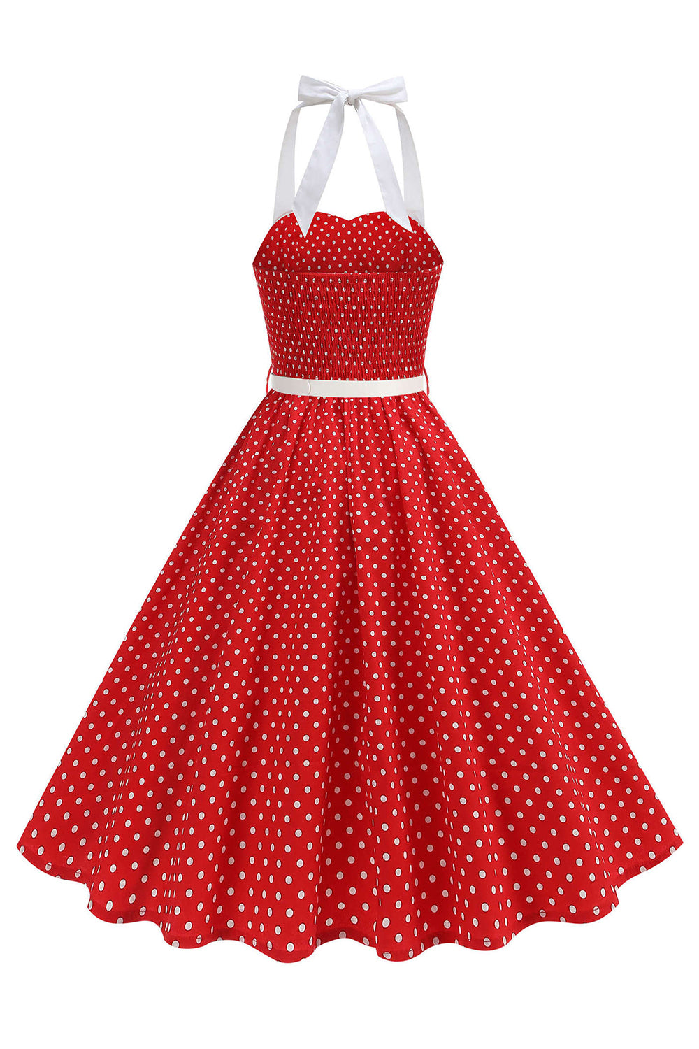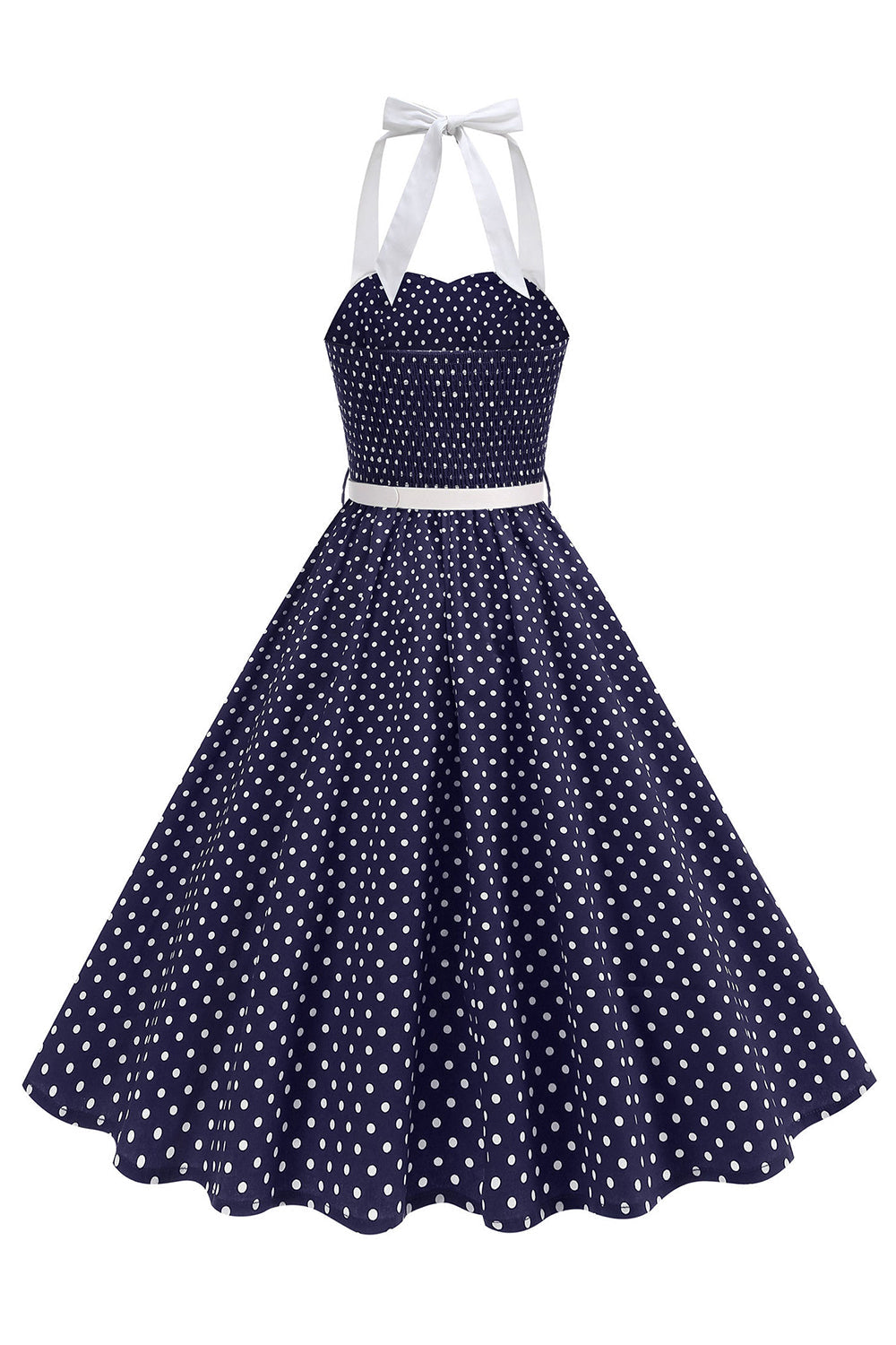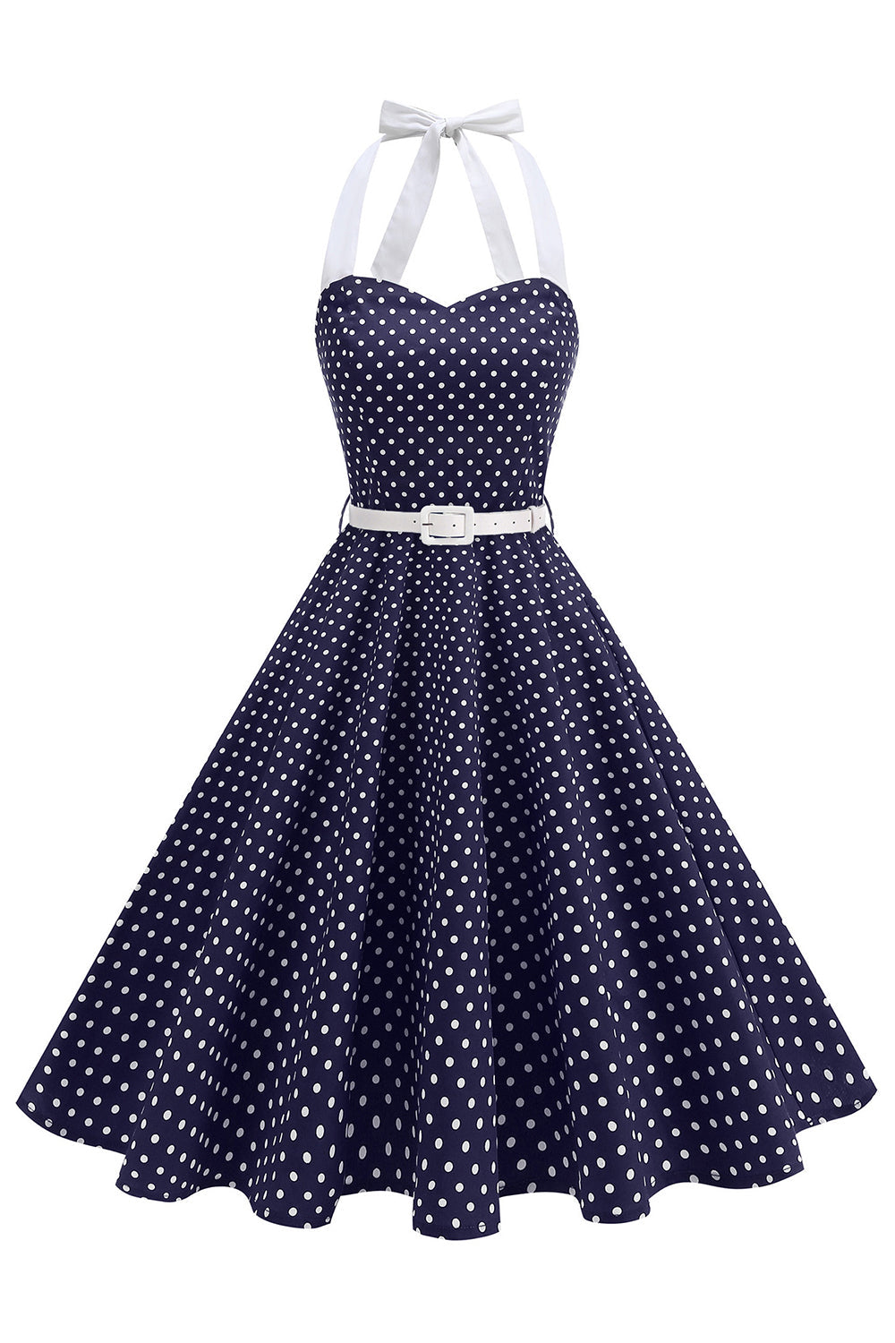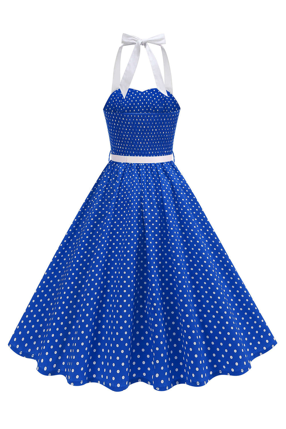Halter Polka Dots Lyseblå A-linje 1950-talls kjole