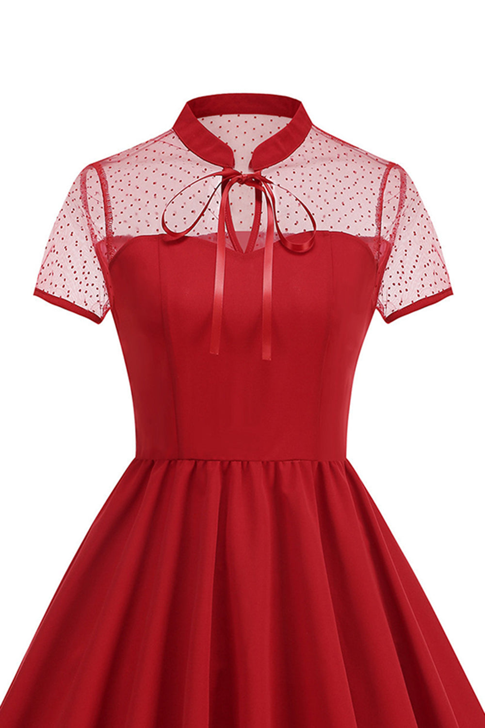 Høy hals med svarte prikker: En linje 1950-talls kjole