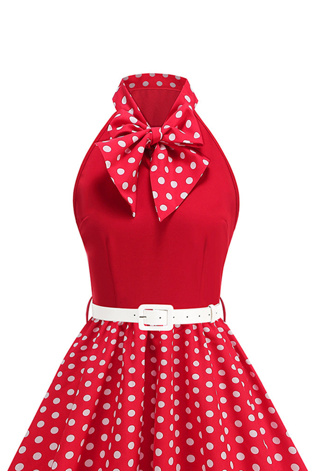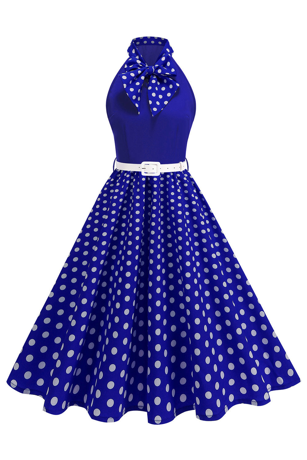 Høyhalsede polkaprikker grønn A-linje 1950-talls kjole med sløyfe