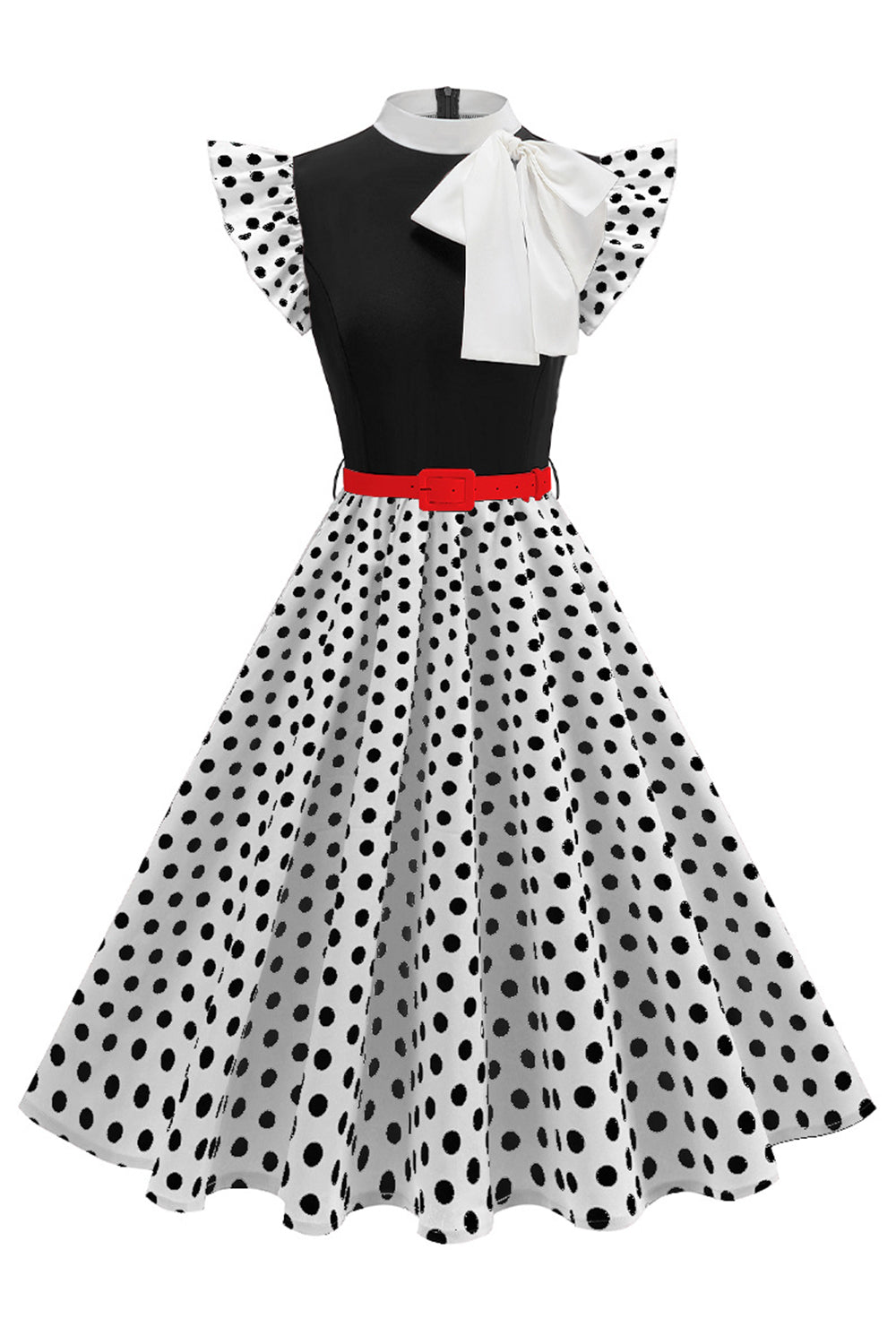 Høyhalsede prikker Svart En linje 1950-talls kjole med sløyfe