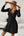 en linje spaghetti stropper svart cocktail kjole med dusk