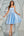 himmelblå stroppeløs hjemkomst kjole