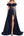 V-hals Svart Blå Plissert Tyll Lang Formell Kjole