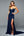 Marineblå stroppeløs slire plissert formell kjole med splitt