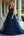 Navy A Line Spaghetti Stropper Lagdelt Blonder Lang Ballkjole