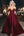 Mørkerød perlebesatt V-hals En linje Brudens mor kjole med hetteermer