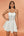 V-hals nøkkelhull hvit festkjole med volanger