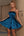 Lyseblå hetteermer med trykk på kjole fra 1950-tallet