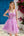 A Line Spaghetti stropper lagdelt rosa tyll Prom kjole med blomstertrykk