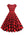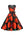 Rød og svart rutete A-linje V-hals 1950-talls kjole