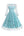 Blå A-linje V-hals 1950-talls kjole med korte ermer